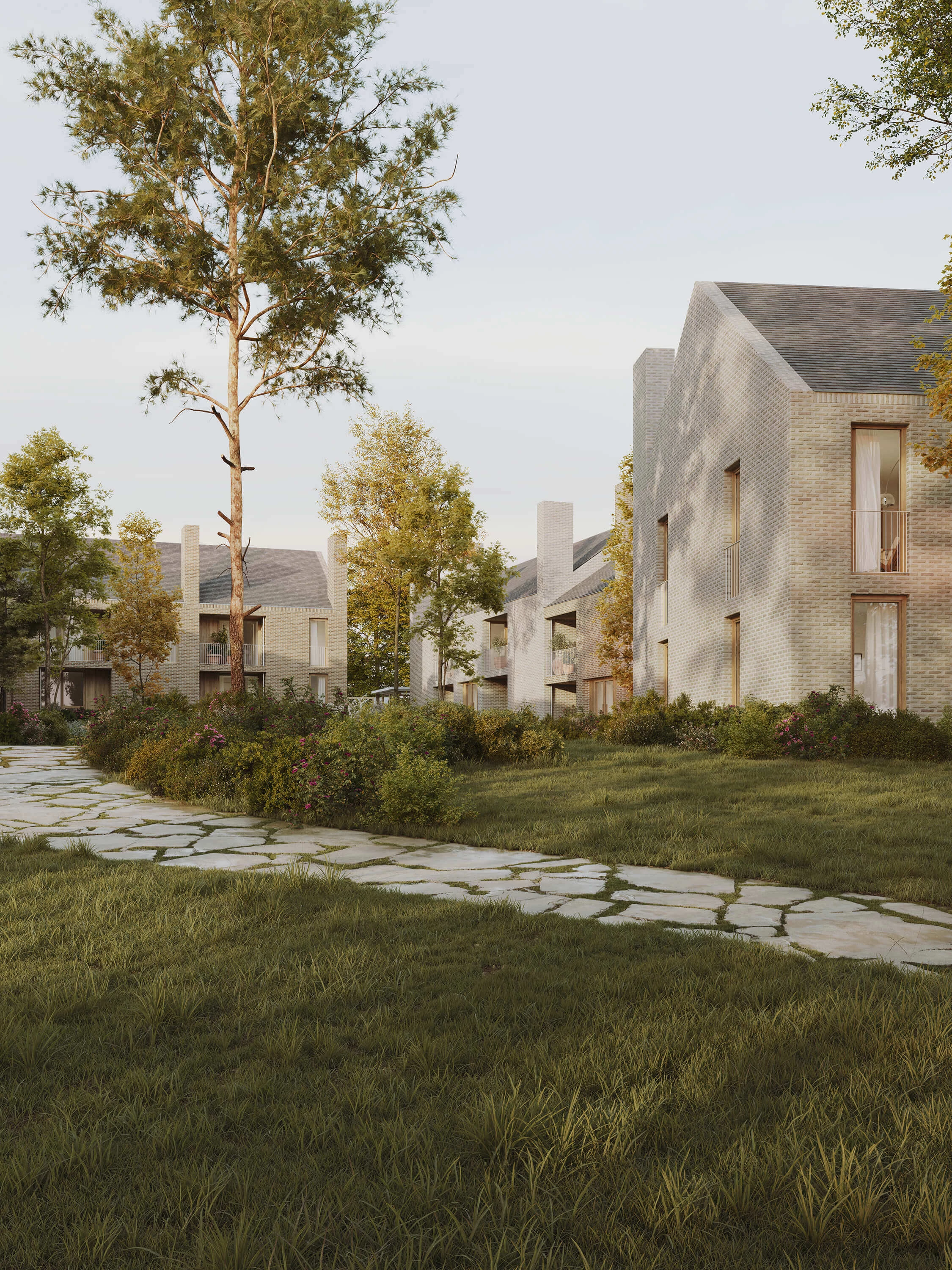 Inspiré par la forme urbaine du hameau, notre projet questionne la notion de densité maîtrisée. Il est essentiel de trouver une réponse adéquate à la demande de cadre de vie individuel en li&en avec la nature, tout en l’adaptant à des formes urbaines plus collectives.