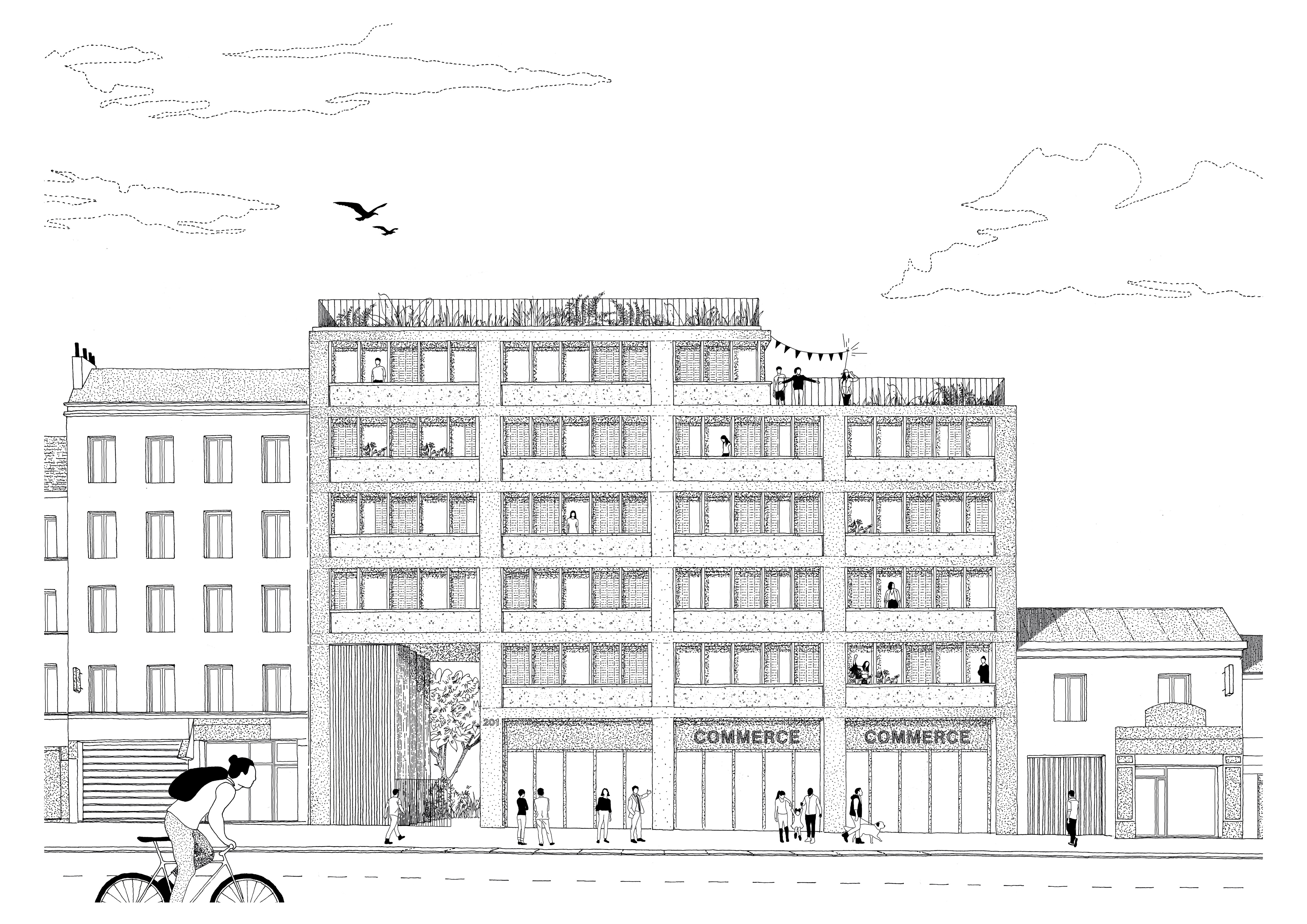 Construction de 21 logements, 2 commerces et 1 local d’activités (Lot A)Réhabilitation lourde de 3 logements sociaux et d’un commerce (Lot B)