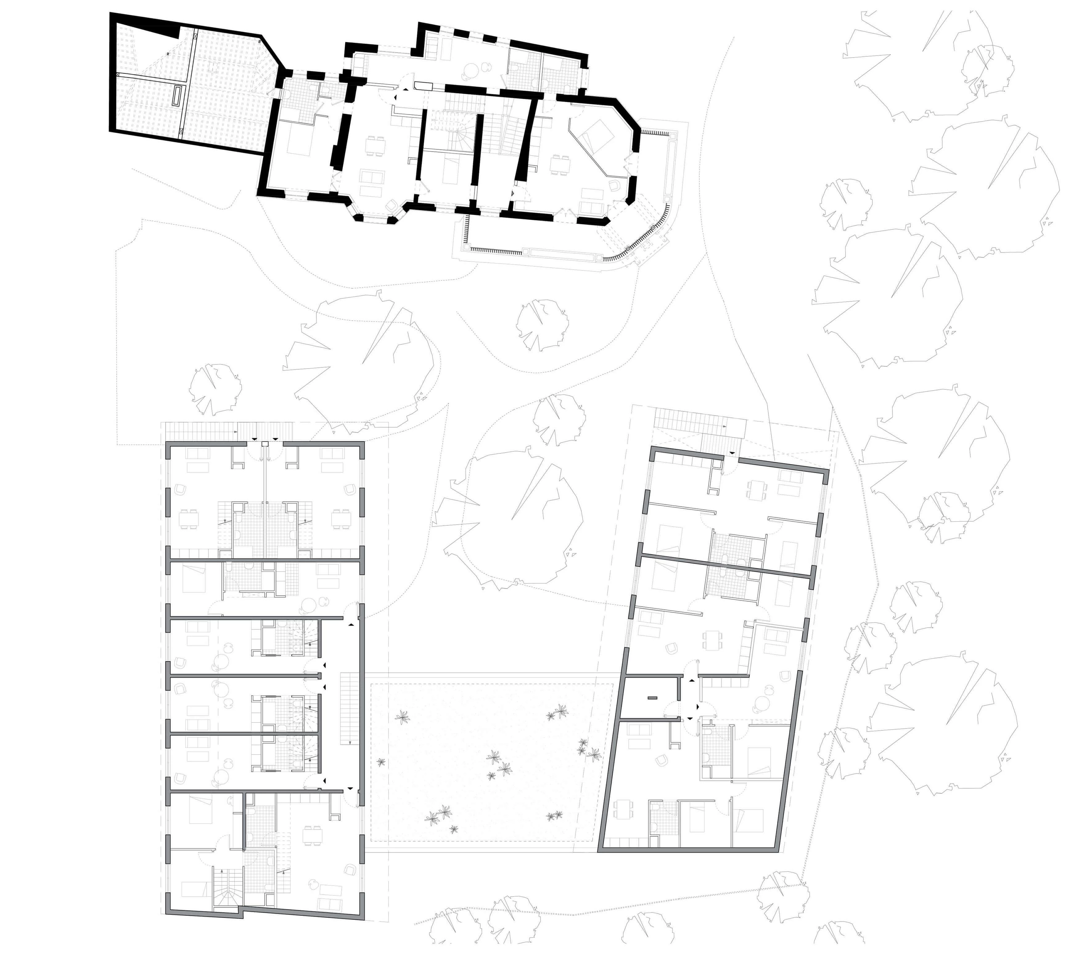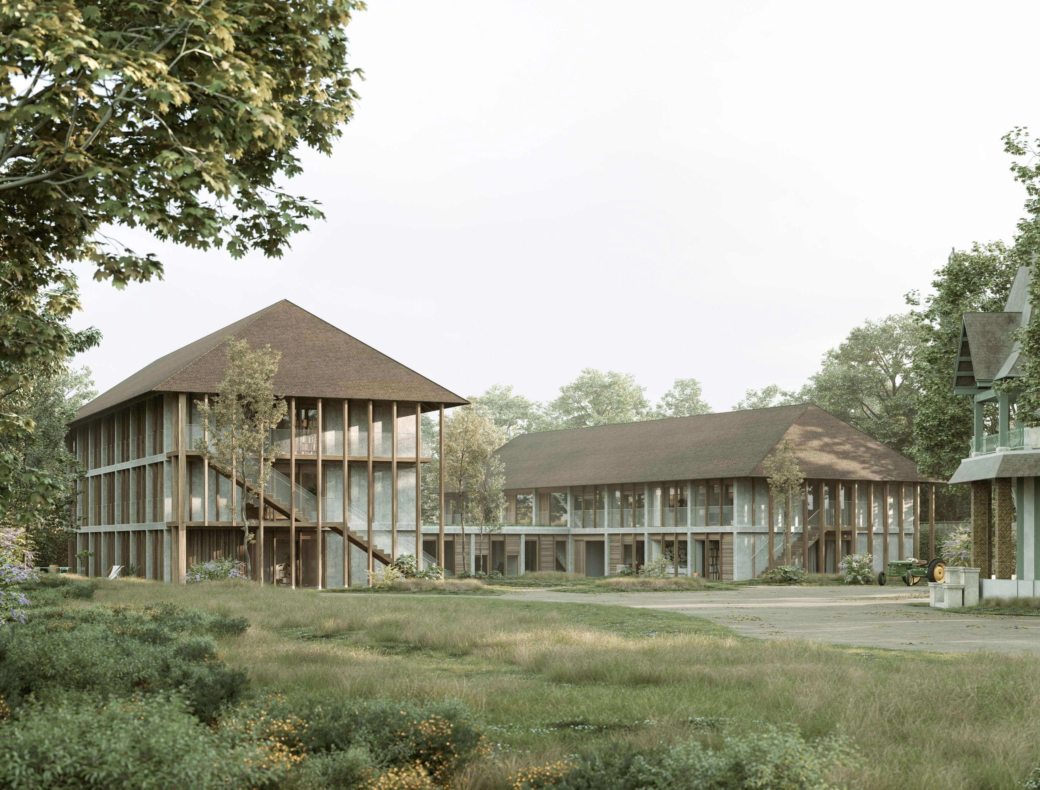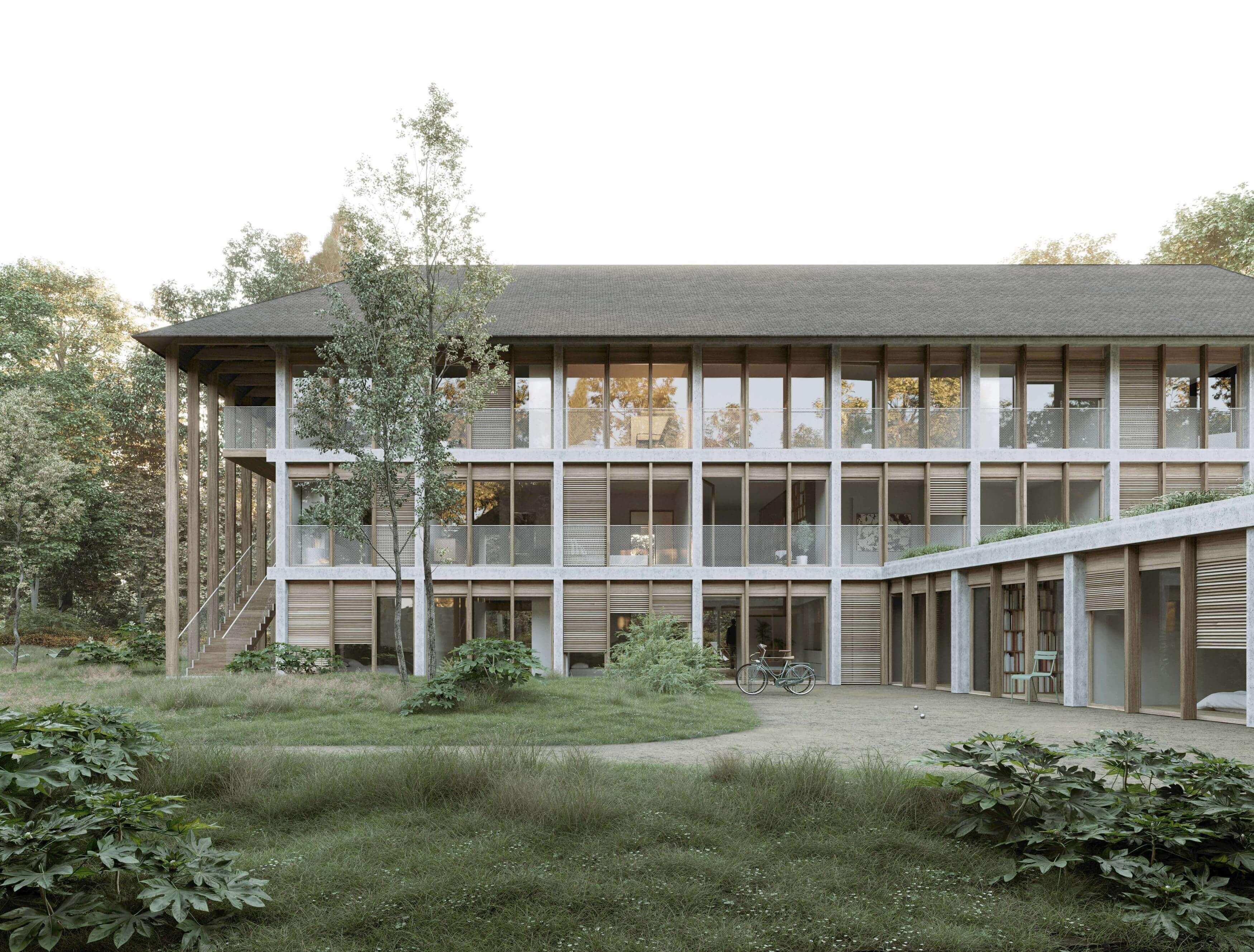 Notre projet se saisit ouvertement du contexte rural et s'appuie sur l'archétype de la maison de maître et des « communs ». Ce parti répond à la question de la dualité d'une construction neuve avec un édifice ancien imposant, permettant de réactiver la valeur architecturale du manoir plutôt que de l'écraser.