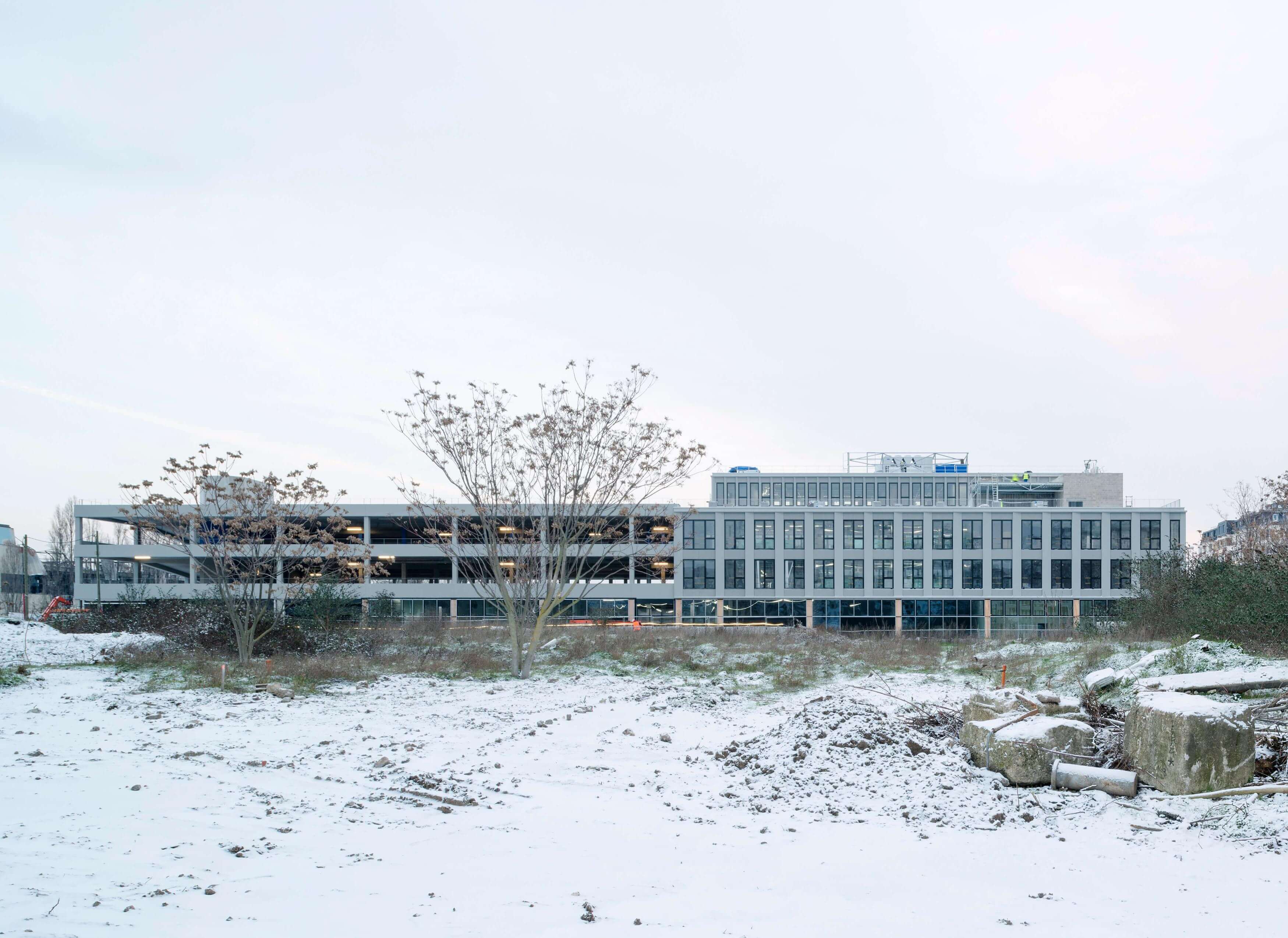 Construction hors-site d'un immeuble de bureaux, une plateforme logistique, des atelier de préfabrication et parking en silo réversible en bureaux.