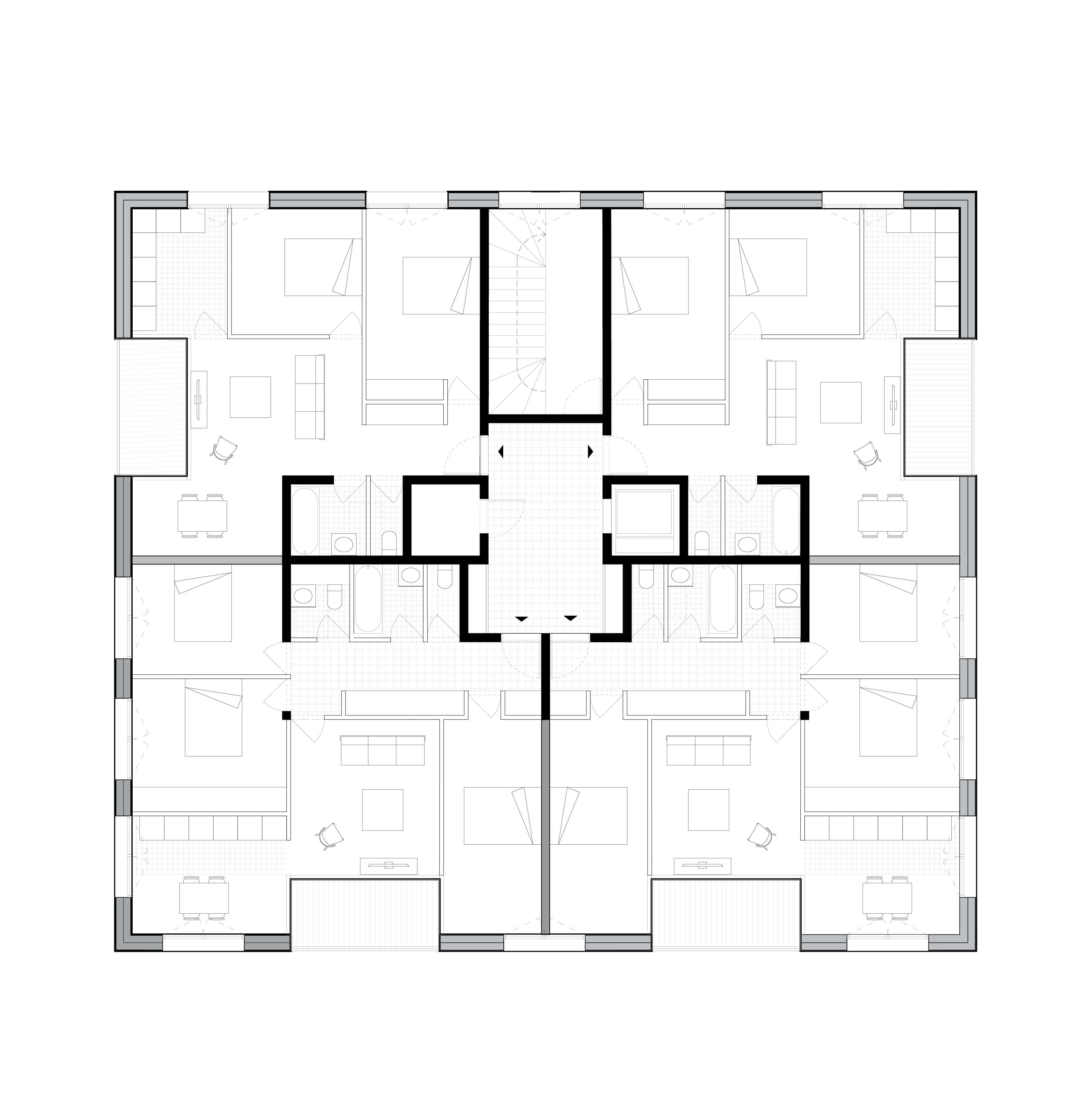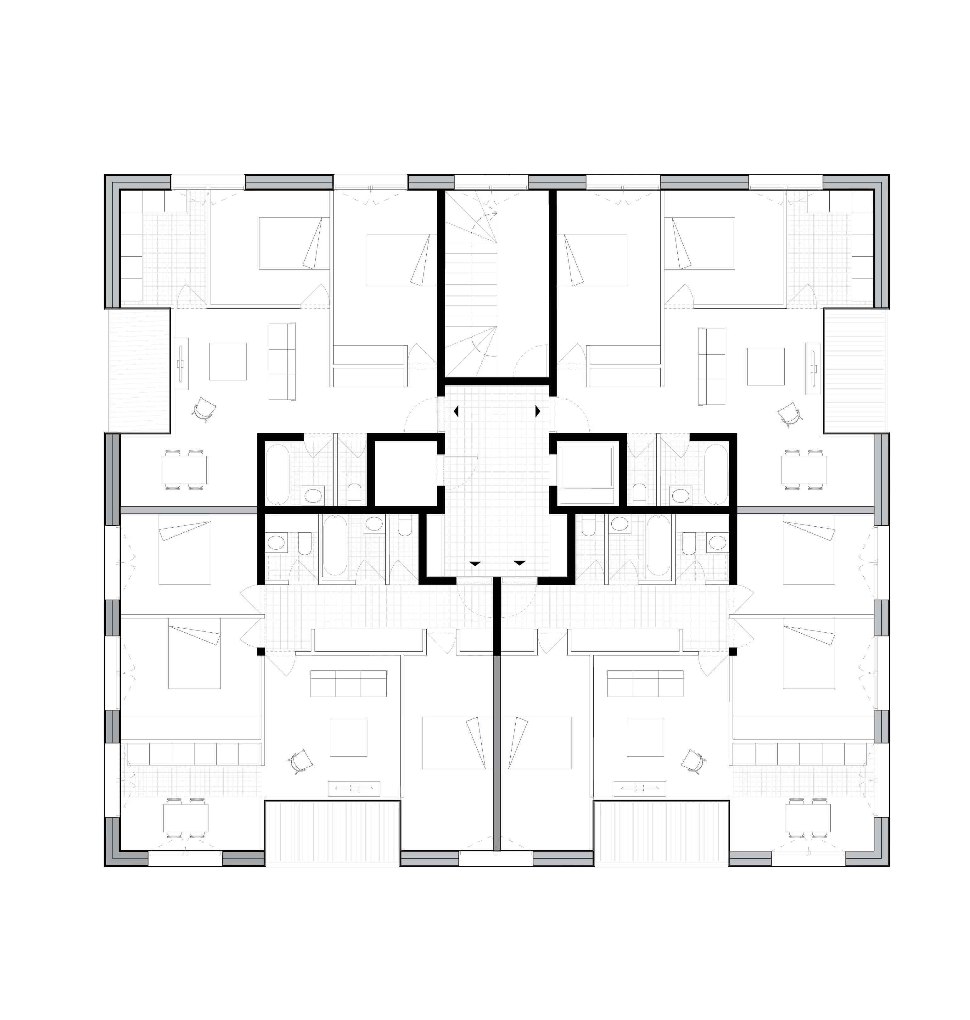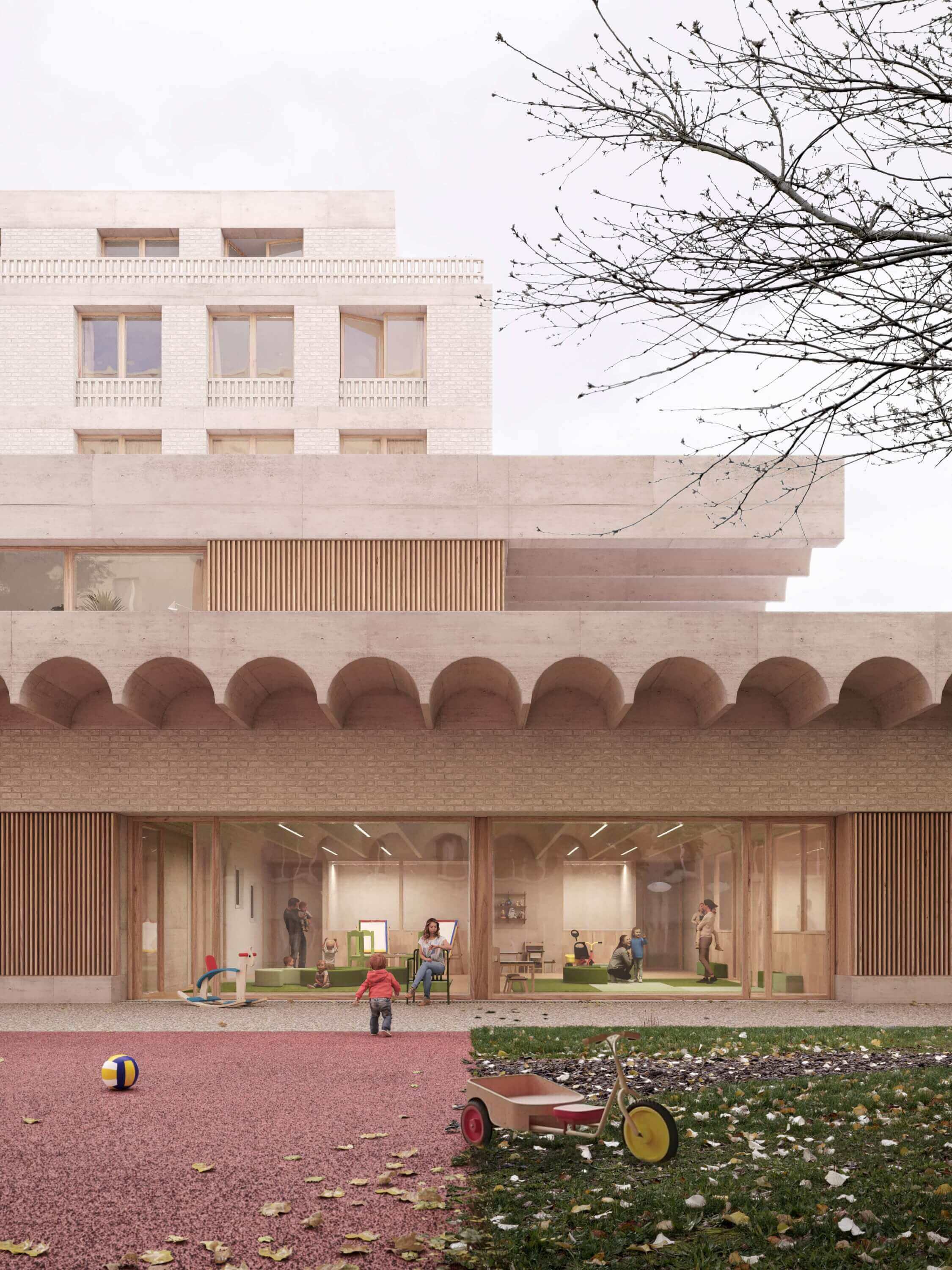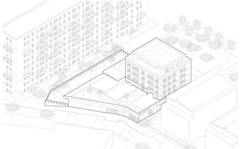 Notre projet se situe au cœur du secteur participe à ce travail d’acupuncture urbaine. Il doit assurer la transition entre le projet entre les barres de logements existants (r+10), les nouveaux logements de l’ilot A2, la novelle voie et le mail planté.